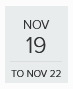 Thu, Nov 19, 2026 10:00 AM Sun, Nov 22, 2026 4:00 PM